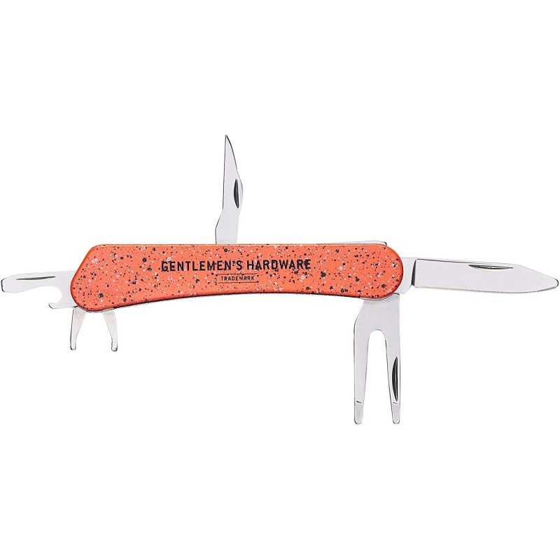 Include 6 titanium finish tools including a divot tool, T spike and groove cleaner, spike tool, screwdriver and bottle opener in speckled paint design.