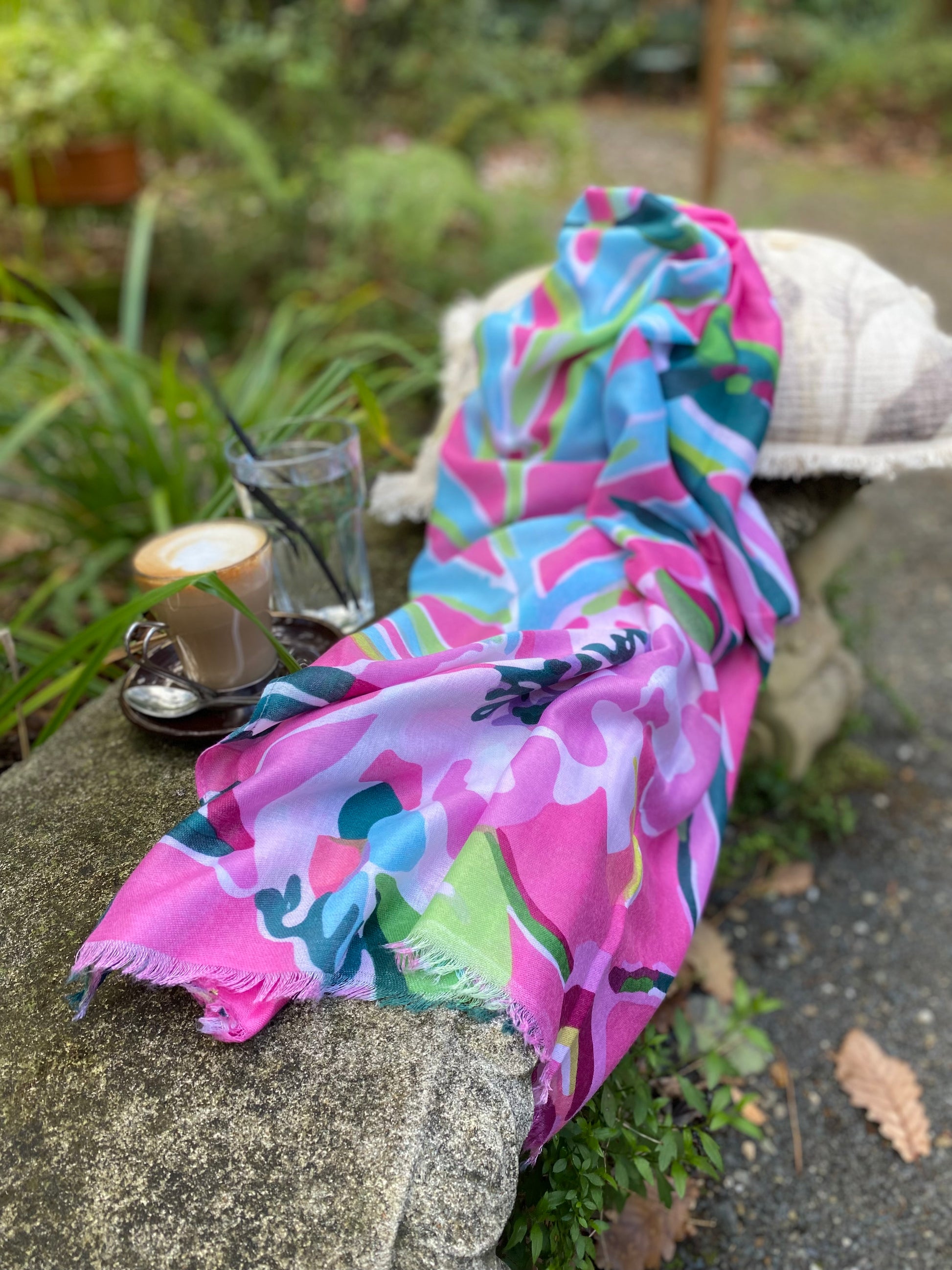Our Saasha Scarf will add that pop of colours for your summer wardrobe. It comes in 2 bright colours that have a block print.